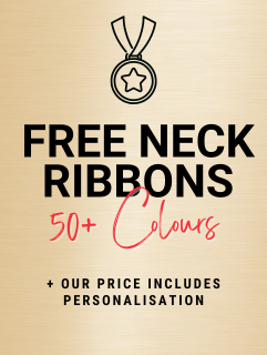 Our advertised price on medals includes personalisation and a complimentary neck ribbon in your choice of colour.